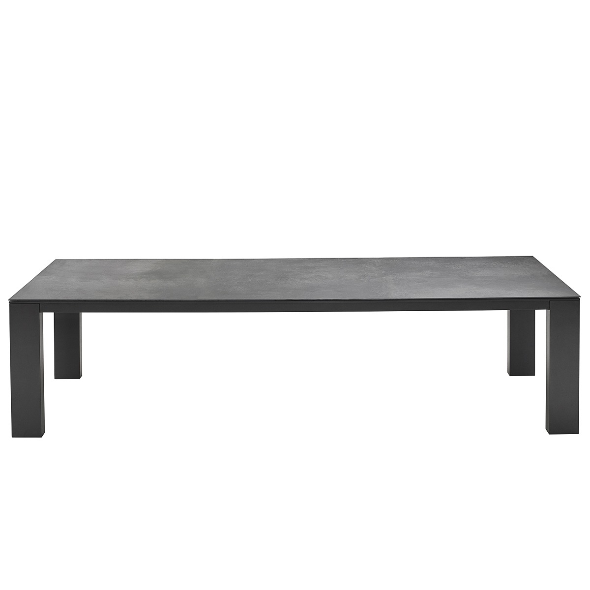 Der große Solpuri Elements Dining Tisch mit den Maßen 250x100cm überzeugt durch sein geradlinig geschnittenes, modernes Rahmenprofil, geprägt durch die breiten, massiven Tischbeine sowie die Tischplatte aus hochwertigem Dekton.