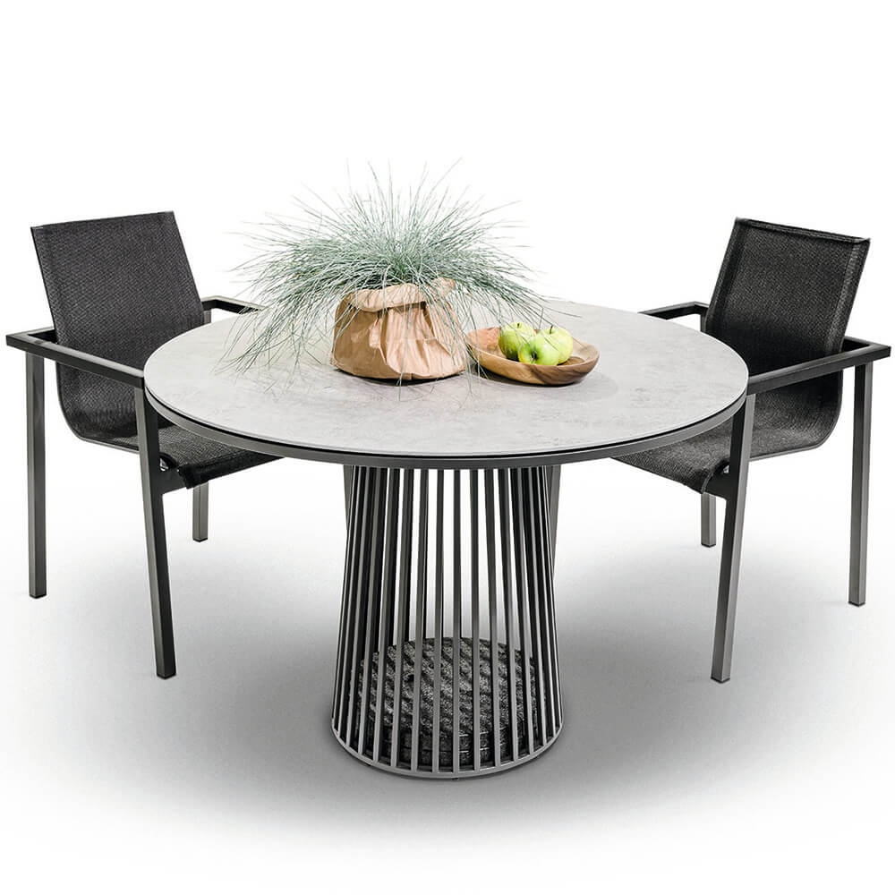 Kratzfest, Farbecht und Frostsicher - Keramik ist ein extrem haltbares Material, das sich ideal für den ganzjährigen Einsatz im Freien eignet. Da die Tischplatte aus einem natürlichen Material hergestellt ist, können die Farbtöne von Tisch zu Tisch variieren. An den Kanten und auf der Oberfläche kann es zu Unebenheiten kommen, die während der Produktions- und Verarbeitungsphasen der Herstellung entstehen.