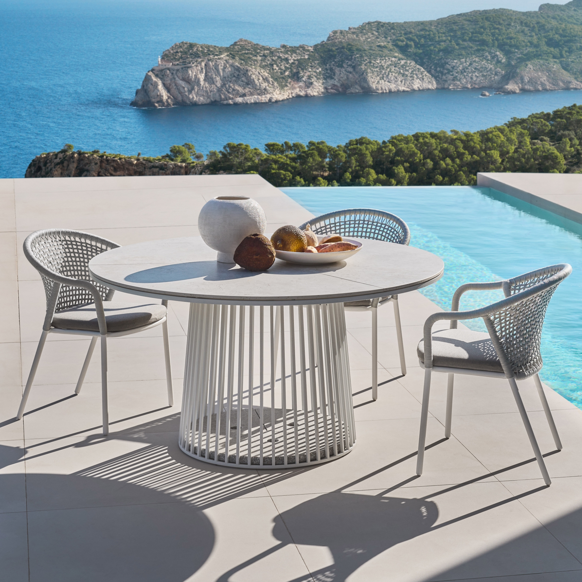 Der GRID Dining Tisch wurde von Karsten Weigel entworfen. GRID ist eine Tischkollektion in trendigem Industrial Design, die durch ein filigranes, transparentes Untergestell aus anthrazitfarbenen Aluminiumstäben charakterisiert wird. Ob als Beistell-, Lounge-, Bistro- oder Esstisch ergänzt GRID ein jedes Outdoor-Arrangement.