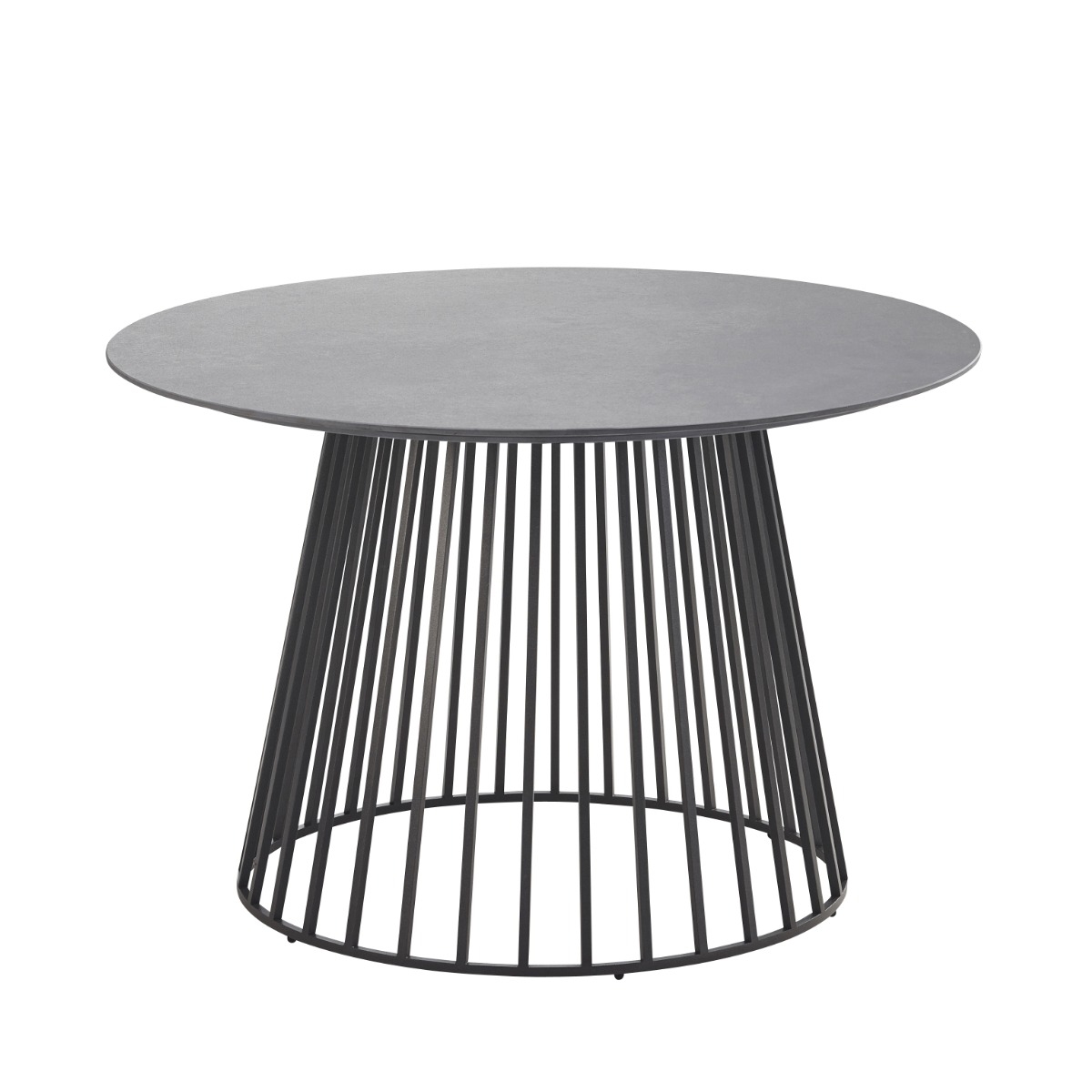 Die Tischplatten – wahlweise aus HPL, Keramik, Dekton oder durchgehendem Teakholz – werden getragen von einem filigranen, transparenten Untergestell aus Aluminium. Ob als Beistell-, Lounge- oder Bistrotisch ergänzt GRID ein jedes Outdoor-Arrangement.