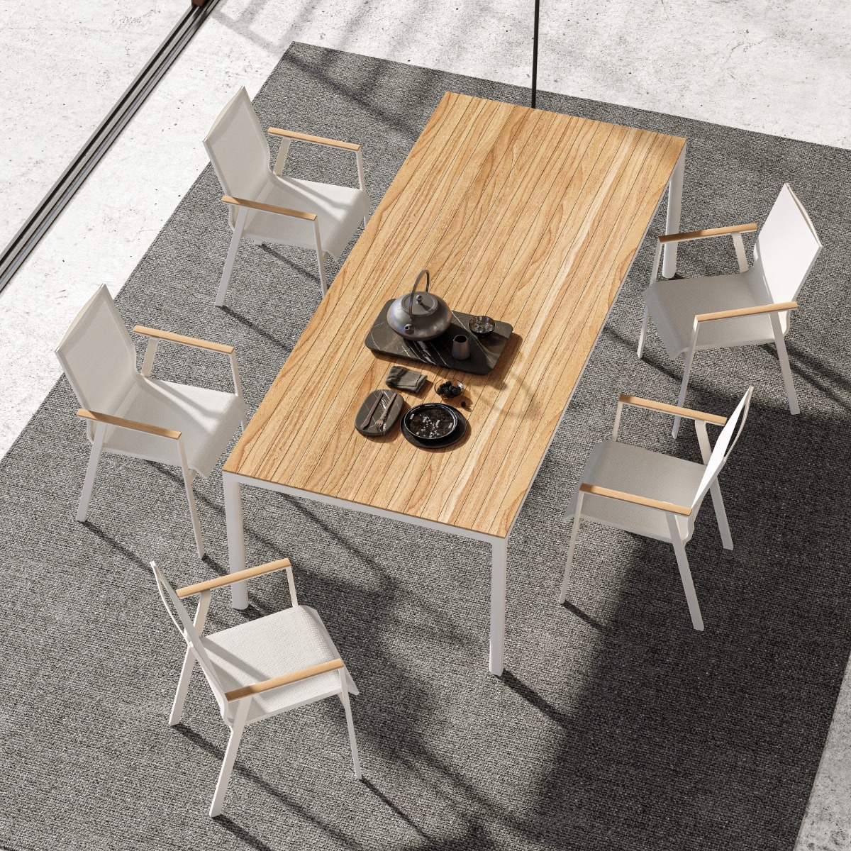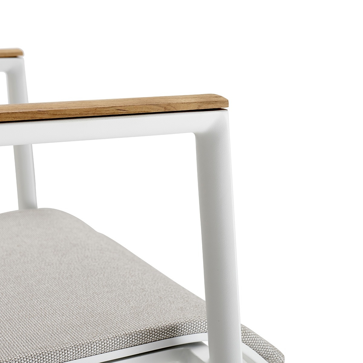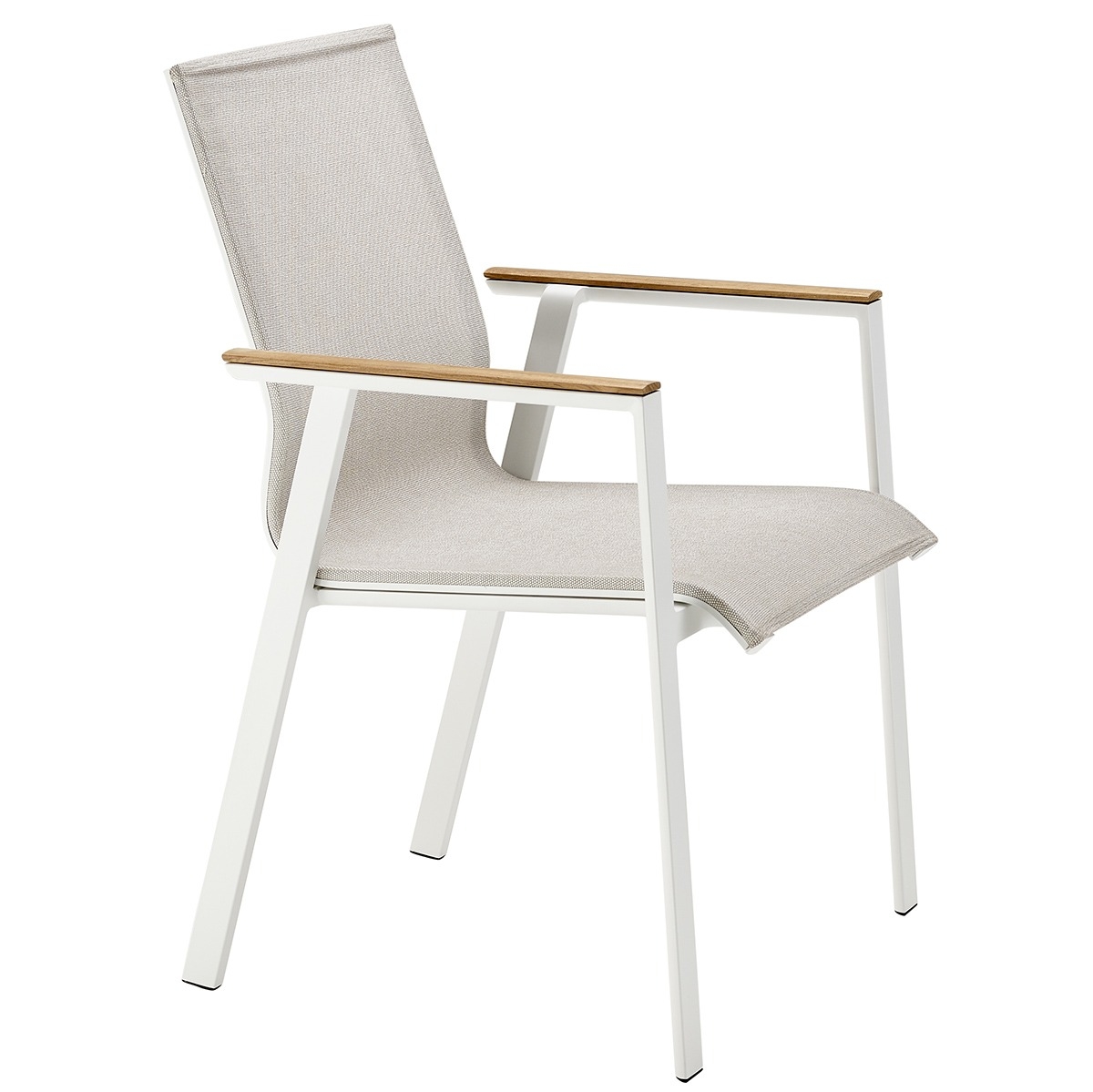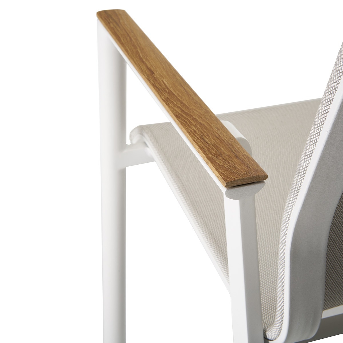 Markant für den SOUL Stapelsessel von Solpuri ist zudem die fliegende Armlehne, wahlweise mit stilvoll eingelassenem Teakholz oder Aluminium black, welches diesem hochwertigen Gartenstuhl eine besondere Note verleiht.