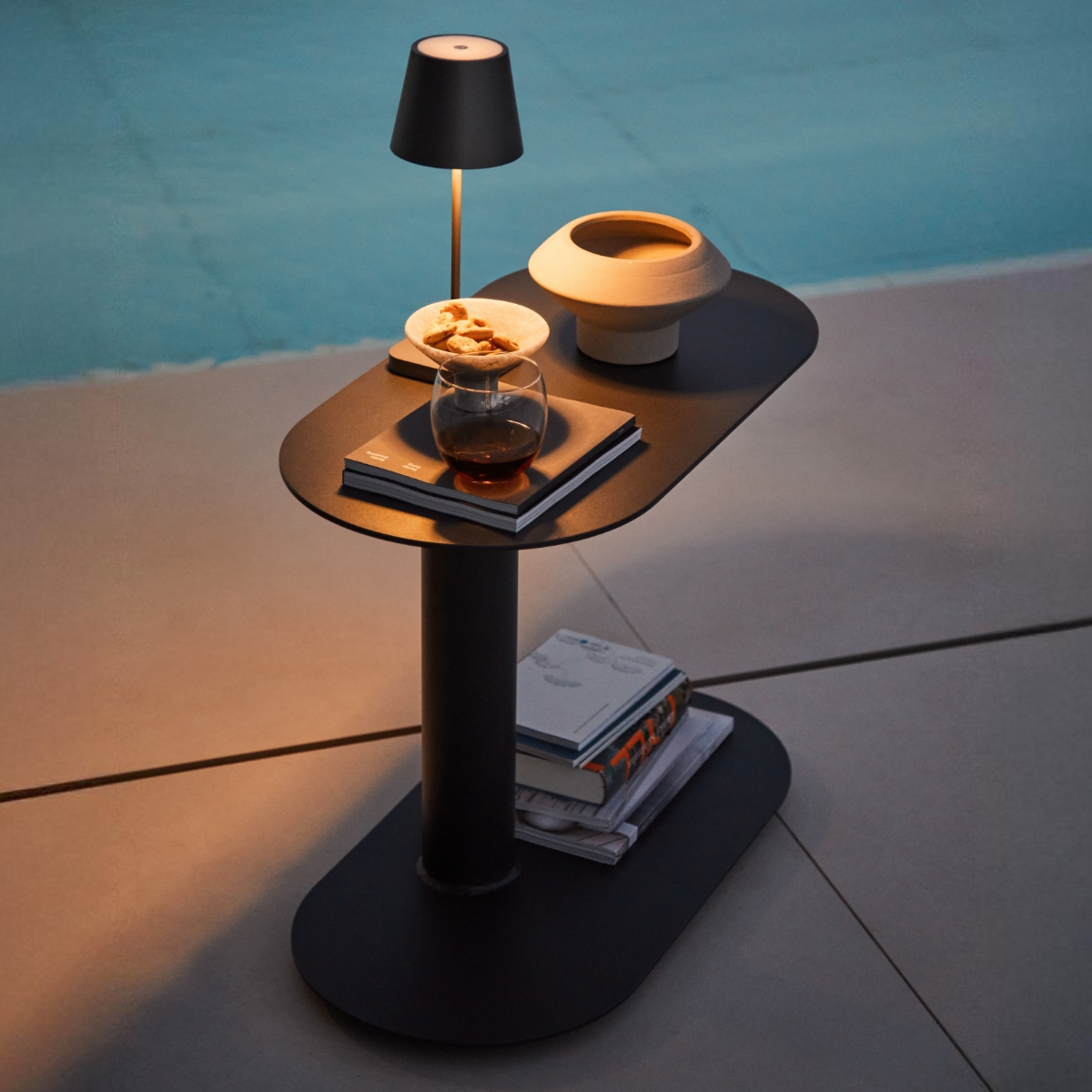 Einfach untergeschoben oder auch freistehend, ist der WING Tisch ein praktisches Accessoire und schafft zusätzliche Ablagefläche.