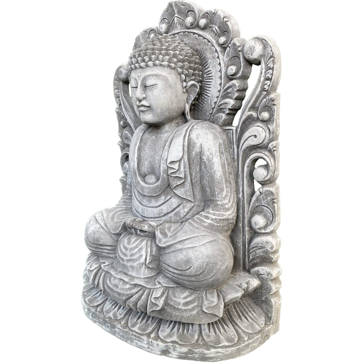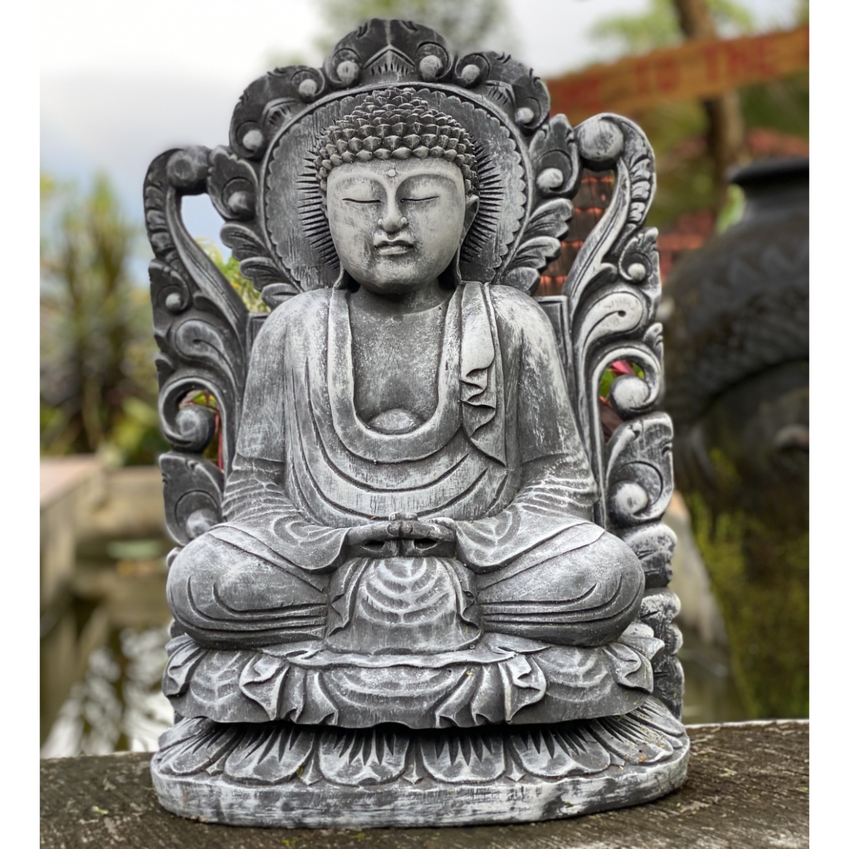 Der sitzende Buddha mit der "Dhyana-Mudra", die Geste der Meditation und Erleuchtung, ist eines der ältesten spirituellen Symbole im Buddhismus. Es zeigt den ersten Buddha bei seiner Meditation und Erleuchtung unter dem Pappelfeigenbaum, der Moment, der ihn zum Buddha machte.