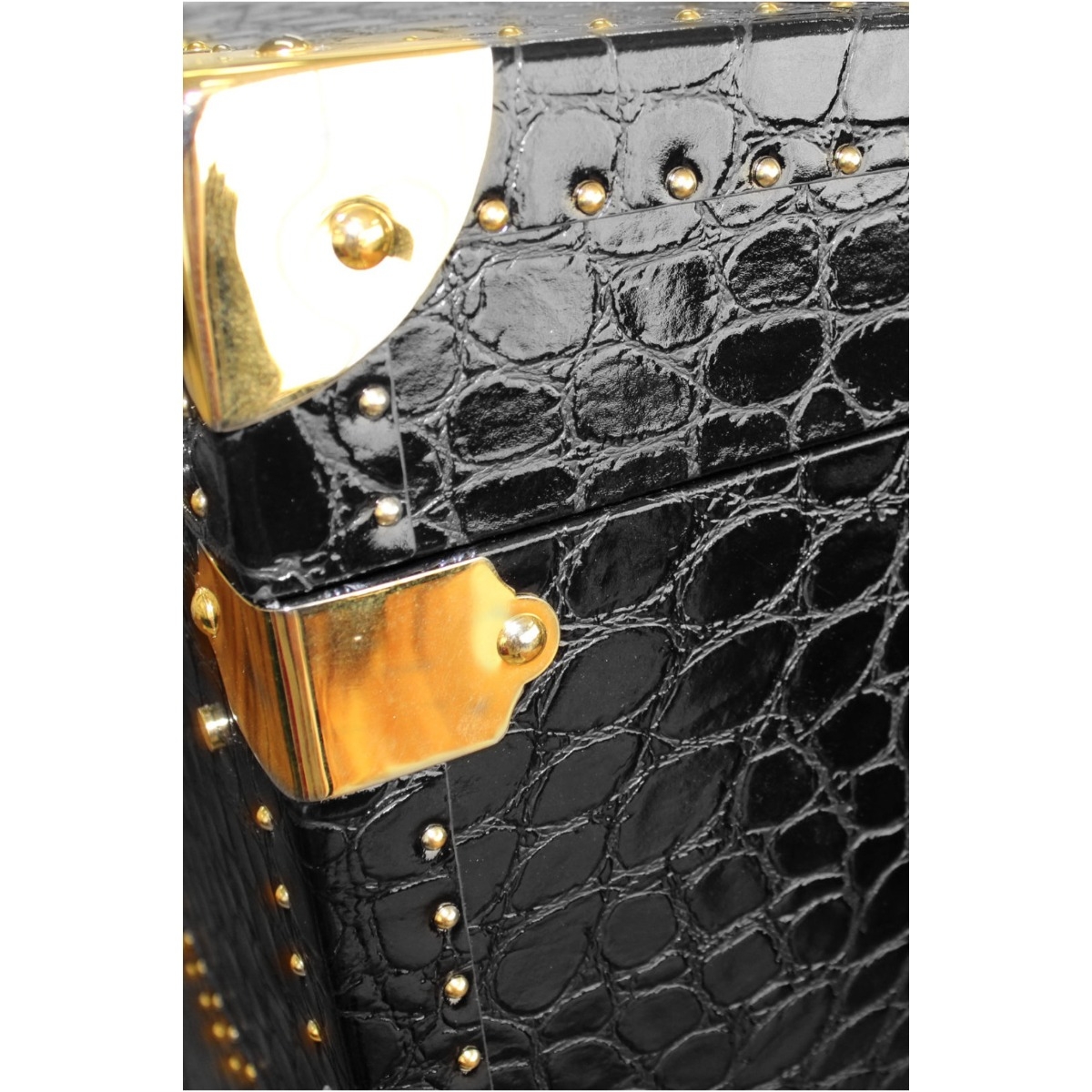 Diese Truhe ist im wahrsten Sinne des Wortes ein königliches Reiseutensil, geeignet für alle, die gerne reisen und dabei nicht nur viele Kleider, Schuhe, Accessoires, sondern auch persönliche Gegenstände, Schmuck und andere Dinge mitnehmen. Majestätisch, geräumig, imposant und voller nützlicher Fächer für die Organisation eines wunderbaren Urlaubs, bei dem Sie Ihre teuersten Güter immer zur Hand haben. Hergestellt aus hochwertigem geprägtem Leder dank der Hände von erfahrenen italienischen Kunsthandwerkern.