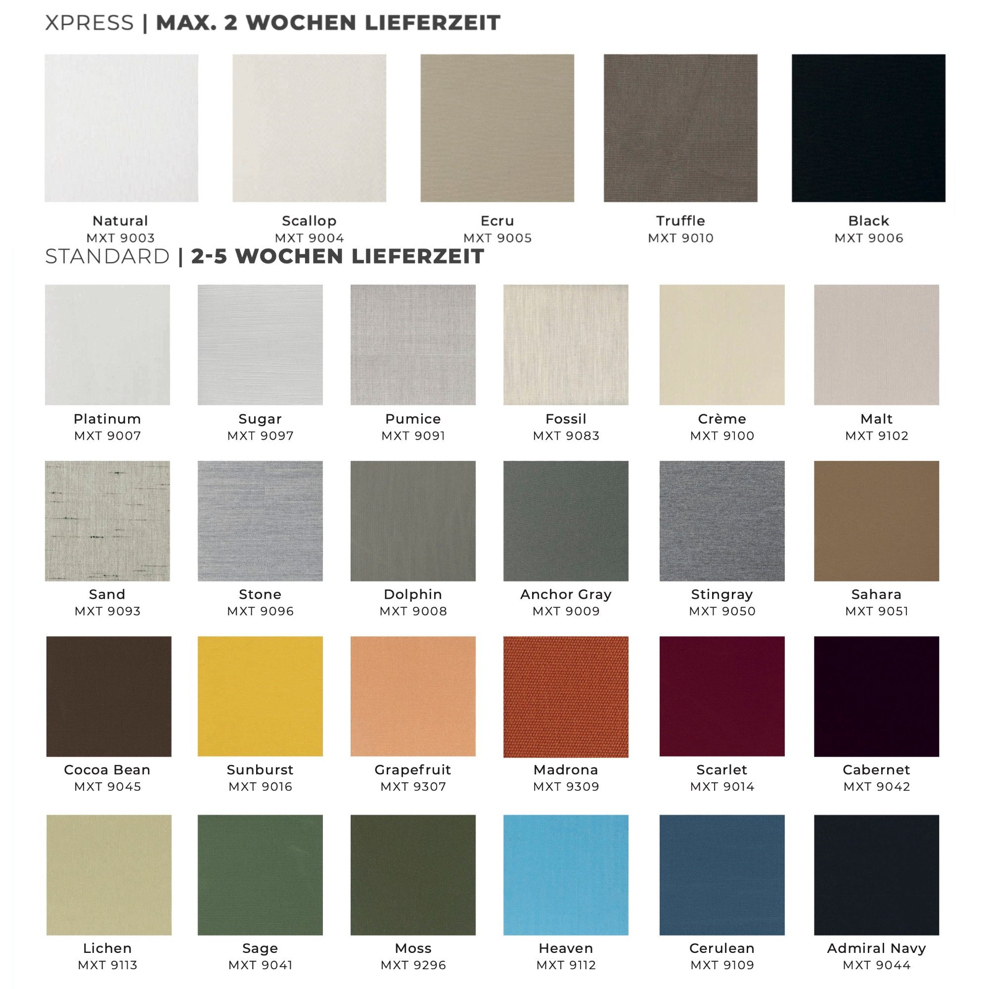 Lieferzeit beträgt 2-5 Wochen für alle Farben außer "Express" gekennzeichnete.