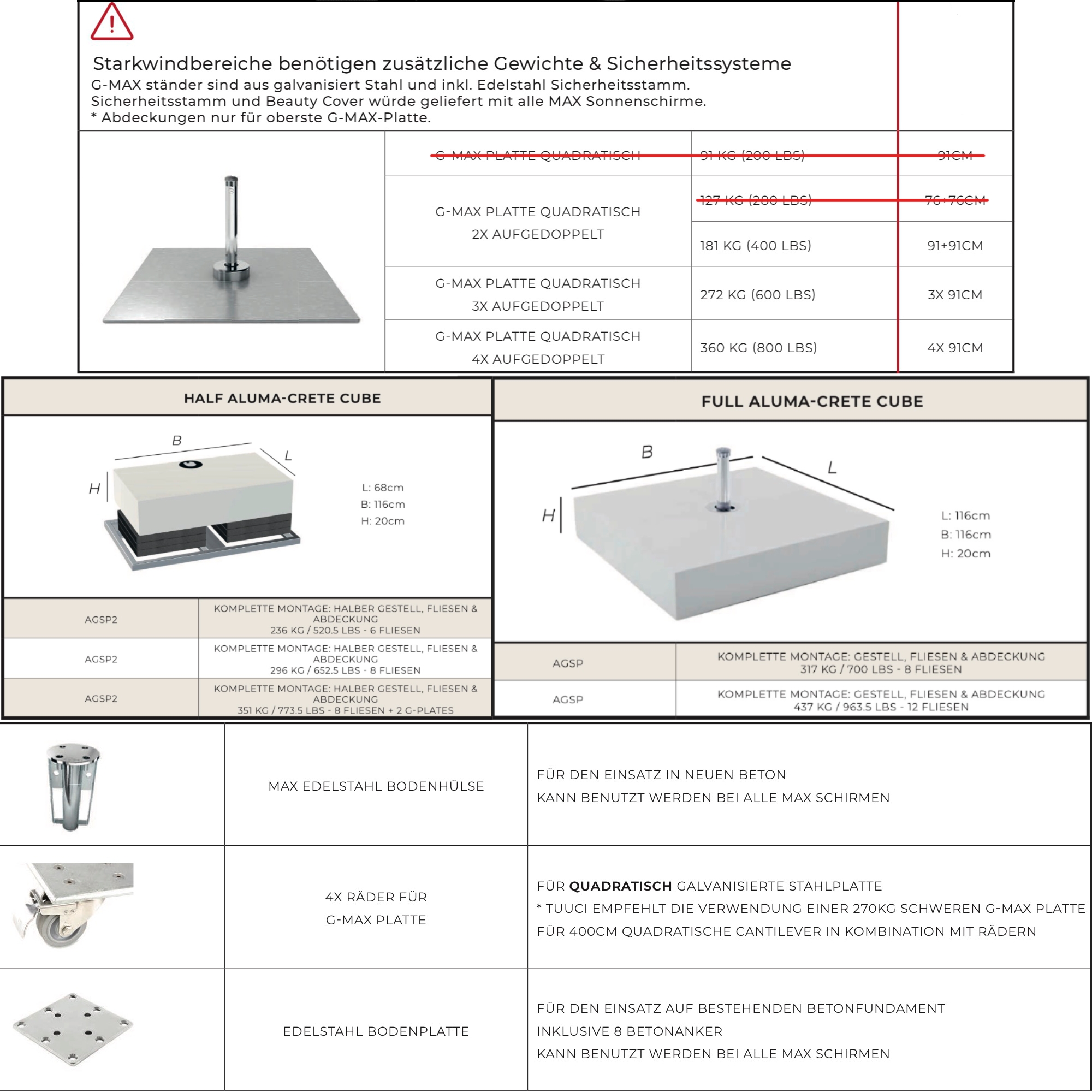 Tuuci Sonnenschirm Ocean Master M1 Klassik Cantilever - manuelle Öffnung, quadratisch