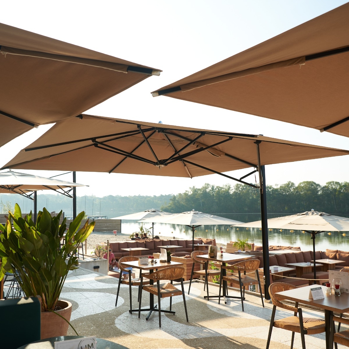 Als Cantilever bezeichnet man die Art der Befestigung des Schirms am Mast. Statt an der Spitze aufgespannt zu werden, ist der Schirm seitlich am Mast angebracht. So können Sie spielend leicht die gewünschte Fläche beschatten, ohne dass TUUCI Ocean Master Klassik Cantilever im Weg steht wie ein herkömmlicher Schirm.