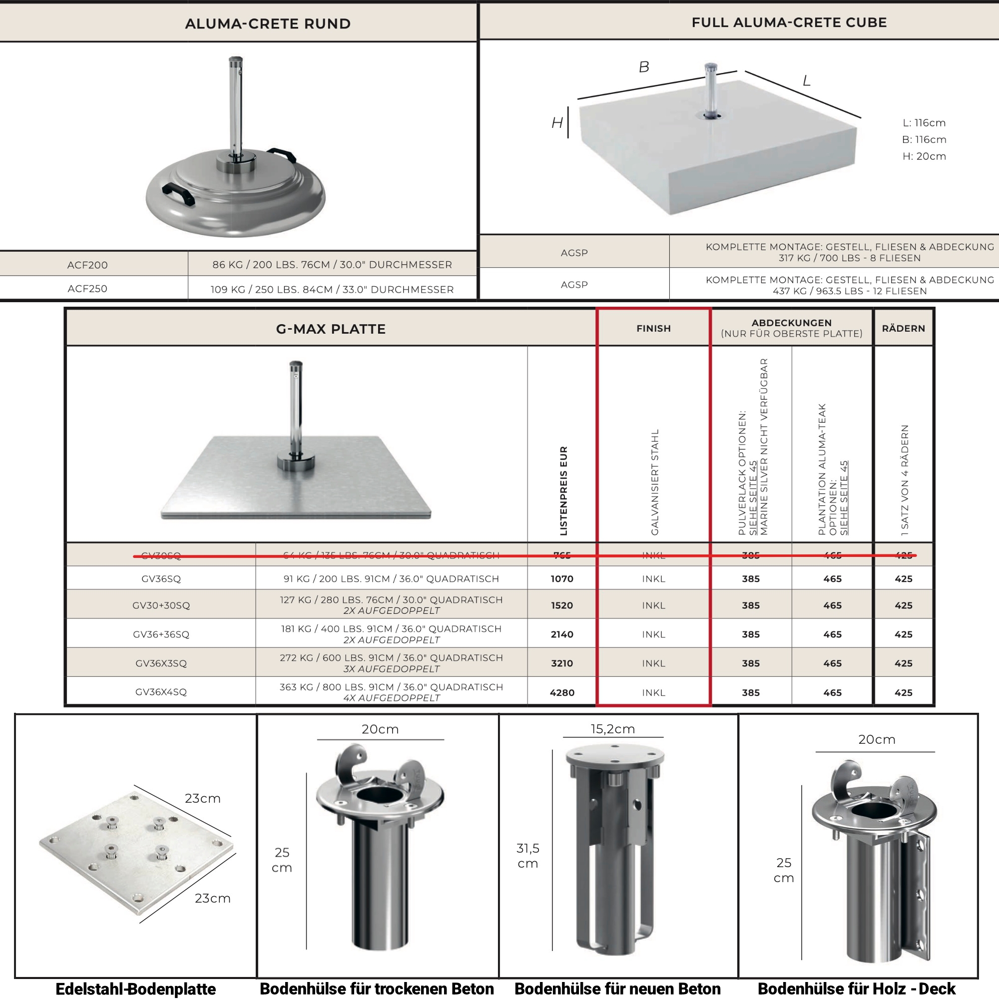 - Material: poliertes Aluminium, optional pulverbeschichtet