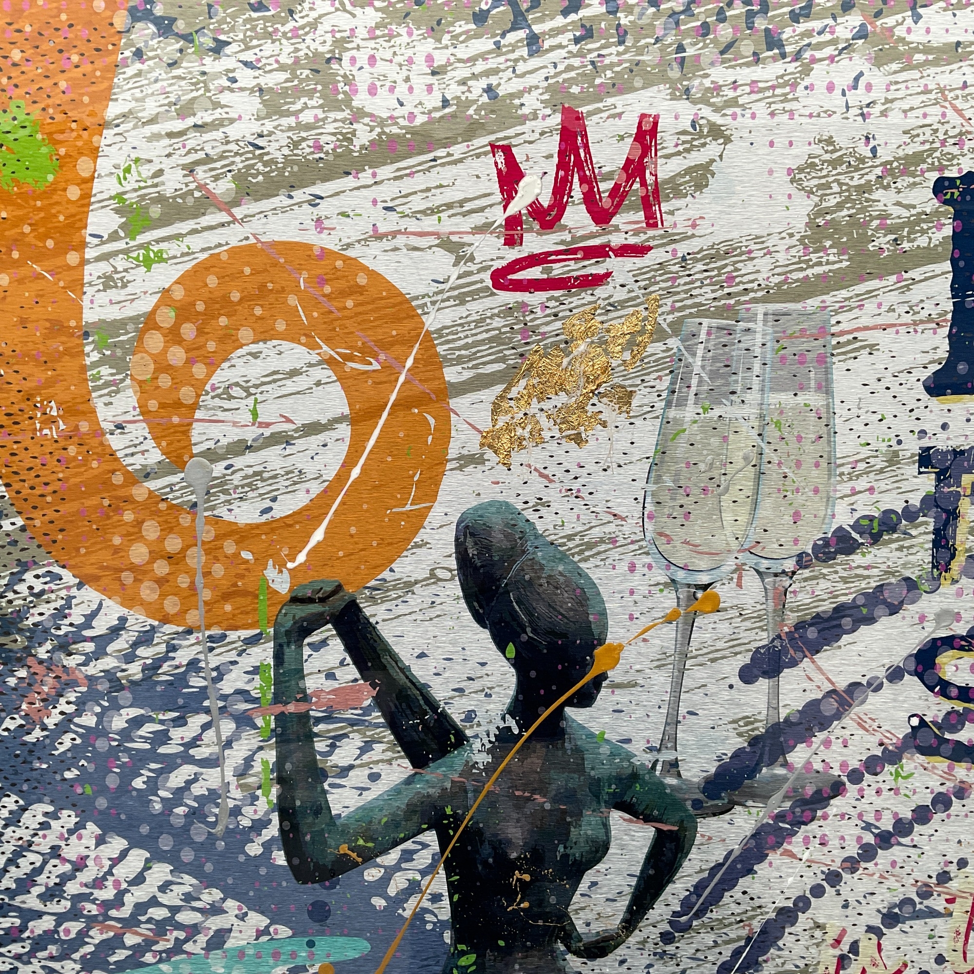 Der Künstler Gerd Müller ist zudem in der Lage, individuelle Kunstwerke nach Wunsch zu realisieren – ganz gleich, ob es sich um eine Person, ein Gebäude, eine Stadtansicht oder ein frei gestaltetes Motiv handelt. Jede Arbeit entsteht in seiner charakteristischen Mischung aus Collage, grafischen Elementen und hochwertigen Materialien.