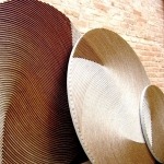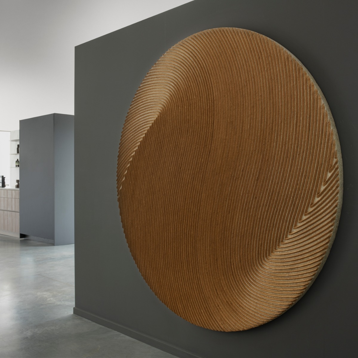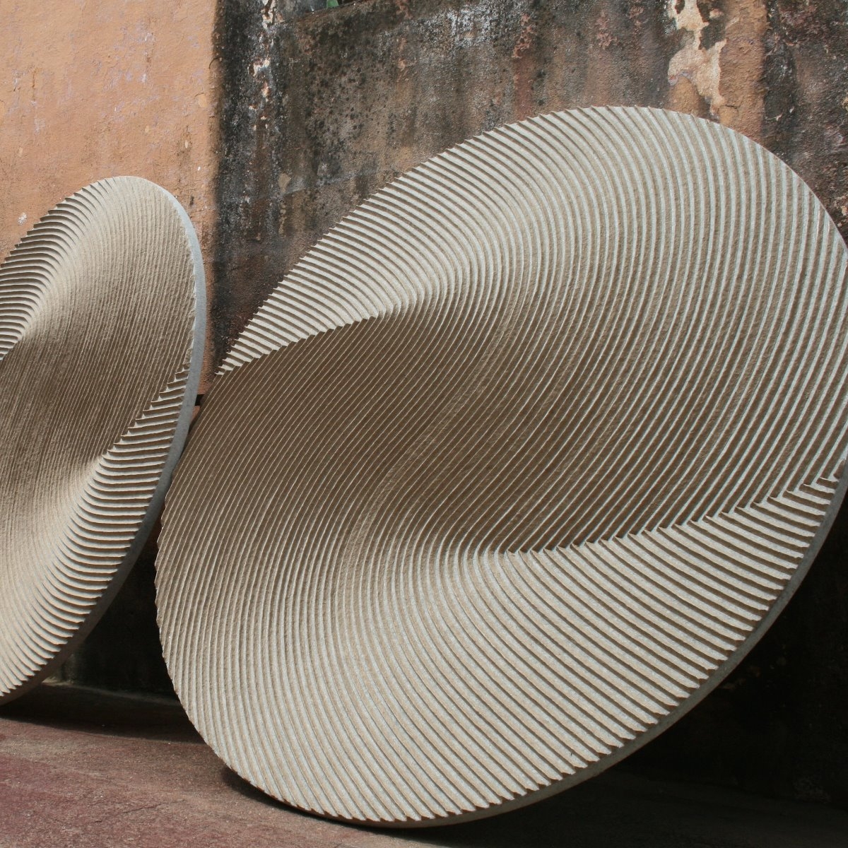 Die Disque- und Placa Friso-Linie von Gardeco besteht aus Wandpaneelen, die aus wiederverwendetem Kartonzellstoff bestehen, der mit Erde und Wasser vermischt wurde. Sie werden in Maria da Fé, Brasilien, im Studio des renommierten Designers Domingos Tótora entworfen und hergestellt,