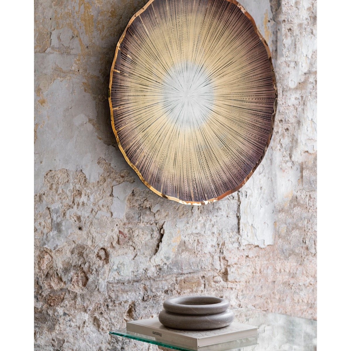 Die Prato de Parede werden im handwerklichen Glasherstellungsstudio Keramos in Brasilien handgefertigt. Sie sind mit wertvollen Materialien wie Glimmermineralien und Goldkomponenten eingefärbt. Diese exquisiten Stücke können als zarte Wand- oder Tischdekoration verwendet werden.
