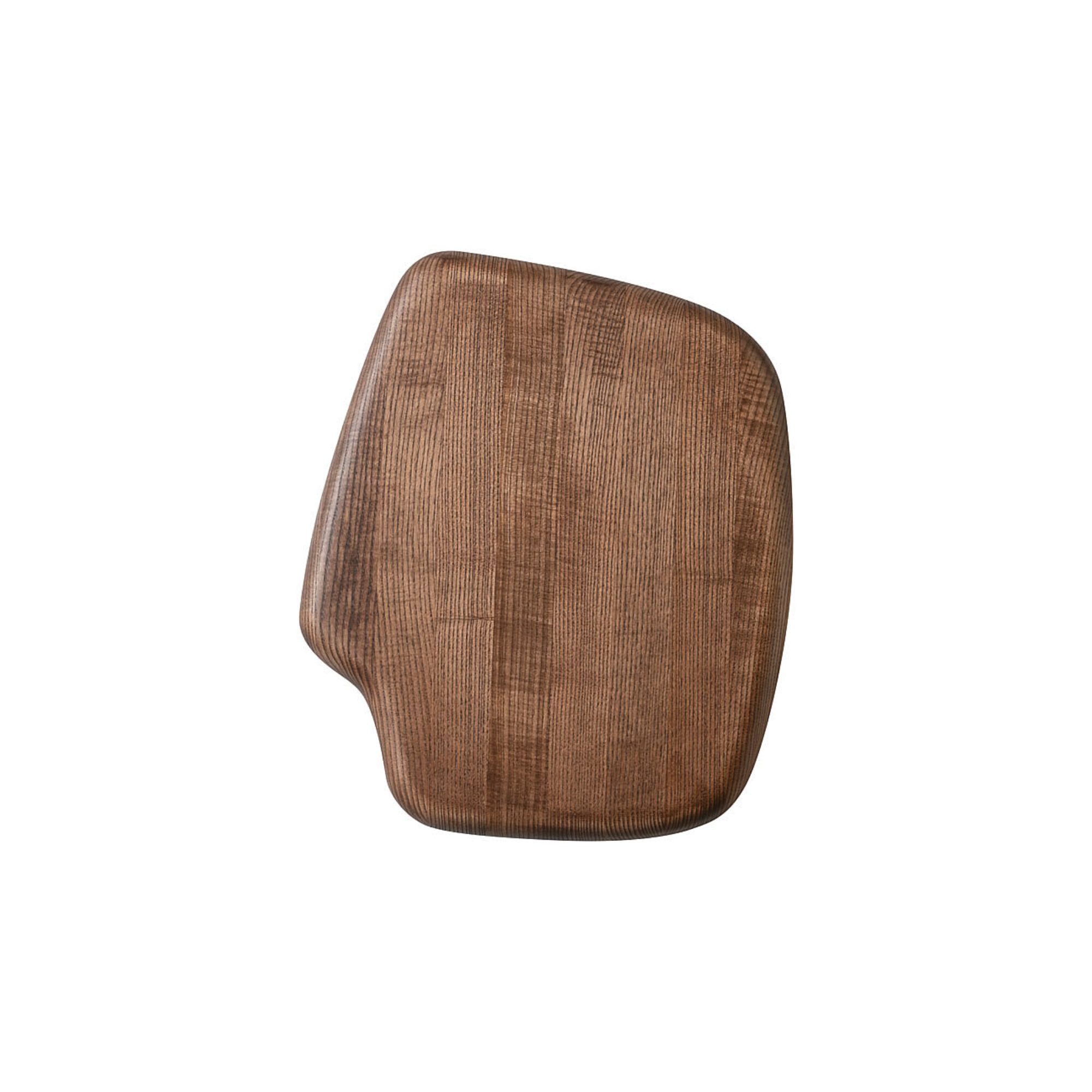 Dieses Relief ist handwerklich aus Eschenholz gefertigt und zeichnet sich durch Form, Ton und Materialbeziehungen aus. Es ist elegant mit einer transparenten braunen Beize lackiert und weist eine sichtbare Holzmaserung auf.
