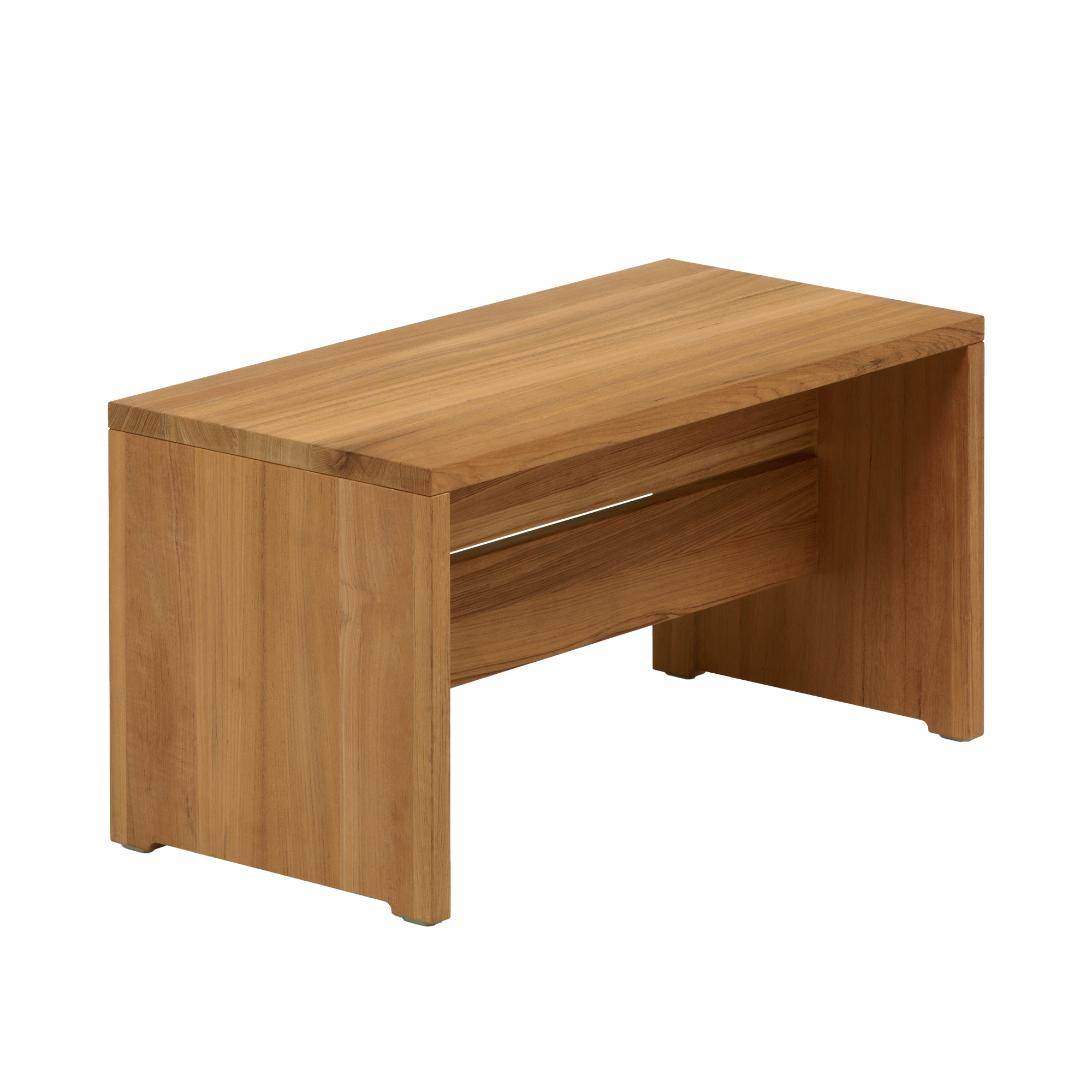 Abhängig von der Baumart variiert das Holz in Bezug auf seine Farbe, Struktur und Eigenschaften. Dabei spielen Faktoren wie Wachstum, Alter und Standort eine wichtige Rolle. Das Material reagiert entsprechend auf Temperatur, Feuchtigkeit und Trockenheit, indem es sich ausdehnt, zusammenzieht oder möglicherweise Risse bildet. Diese Veränderungen beeinflussen jedoch nicht seine Funktion. Im Gegenteil: Jeder Tisch, jede Bank oder jeder Hocker wird dadurch zu einem Unikat und einem individuellen Begleiter.