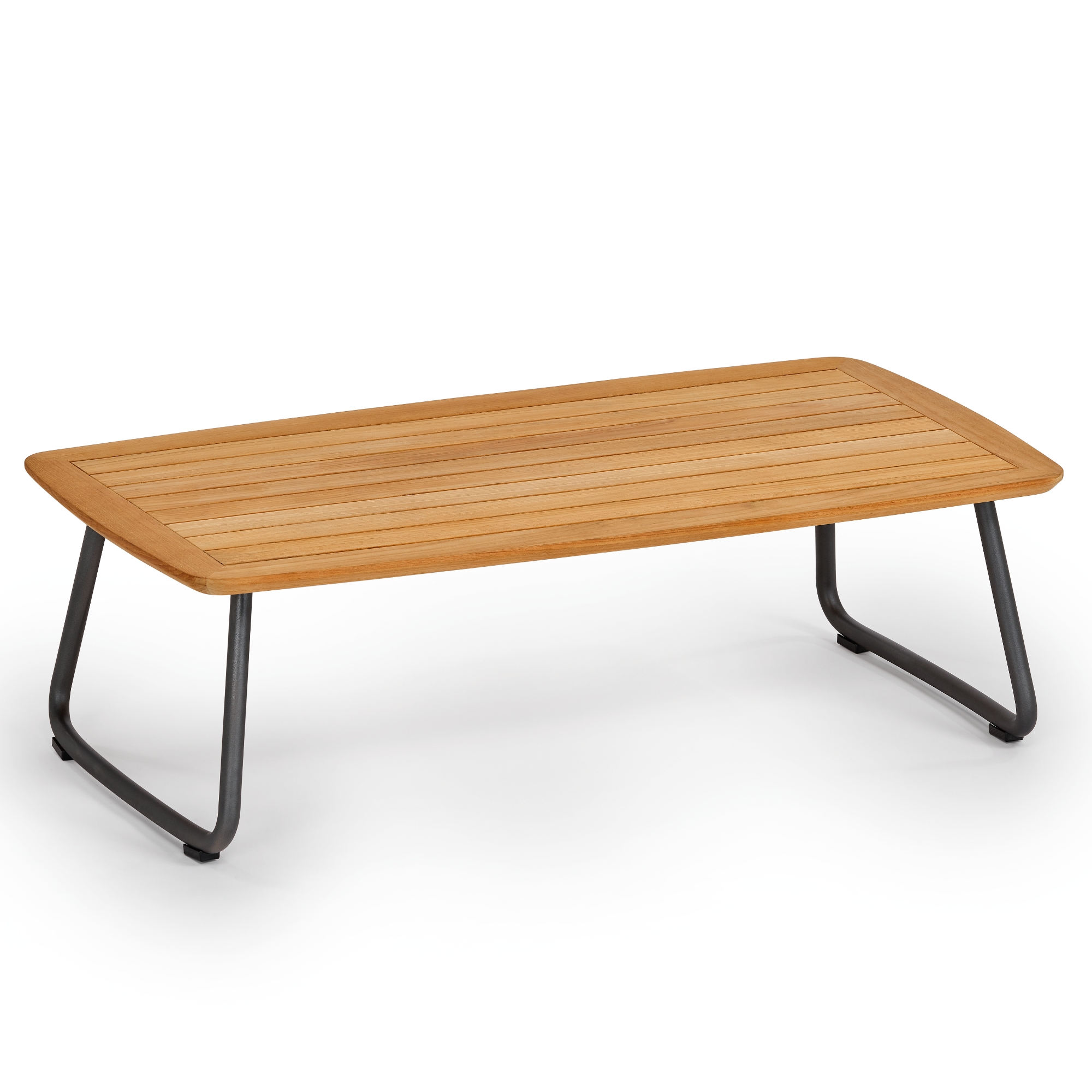 Dieser Loungetisch verfügt über eine Teak-Belattung als Tischplatte. Seine rechteckige Form und die praktische Höhe machen ihn vielseitig einsetzbar im Garten oder auf der Terrasse.