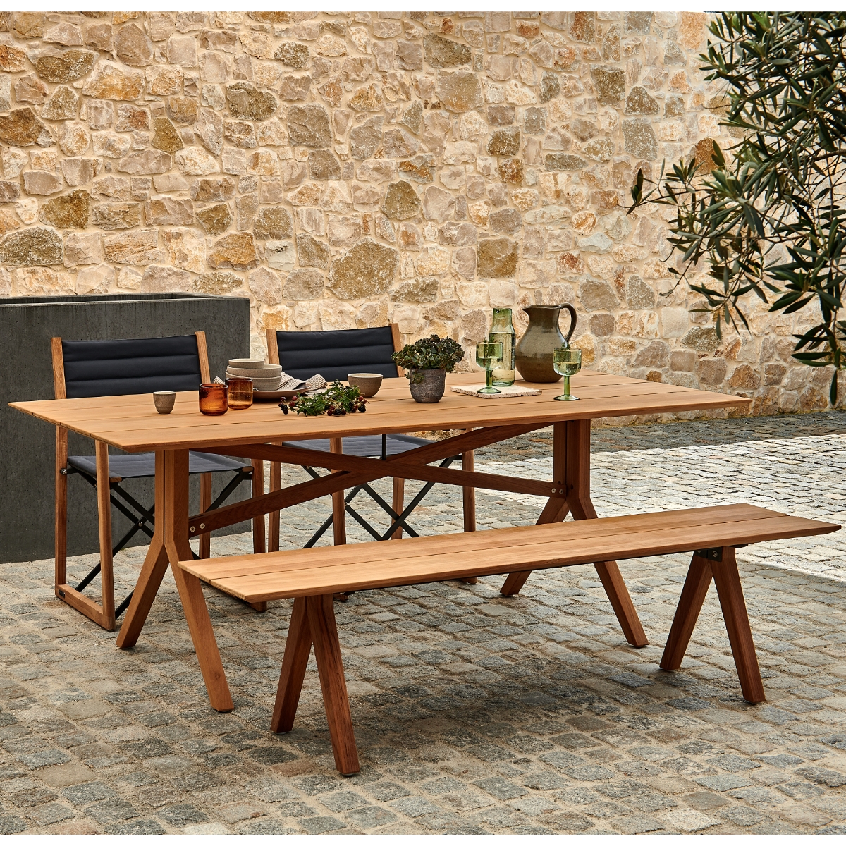 Unser LOFT-Sortiment besticht durch seine feinen Details. Zum Beispiel: ergonomisch geformte Bänke für optimalen Sitzkomfort. Wir bieten sie in verschiedenen Längen an, passend zu den formschönen Tischen aus massivem Teakholz. Der passende LOFT-Stuhl mit seinen absolut wetterfesten, pulverbeschichteten Aluminiumdetails spiegelt die klassische Form eines klappbaren Regiestuhls wider.