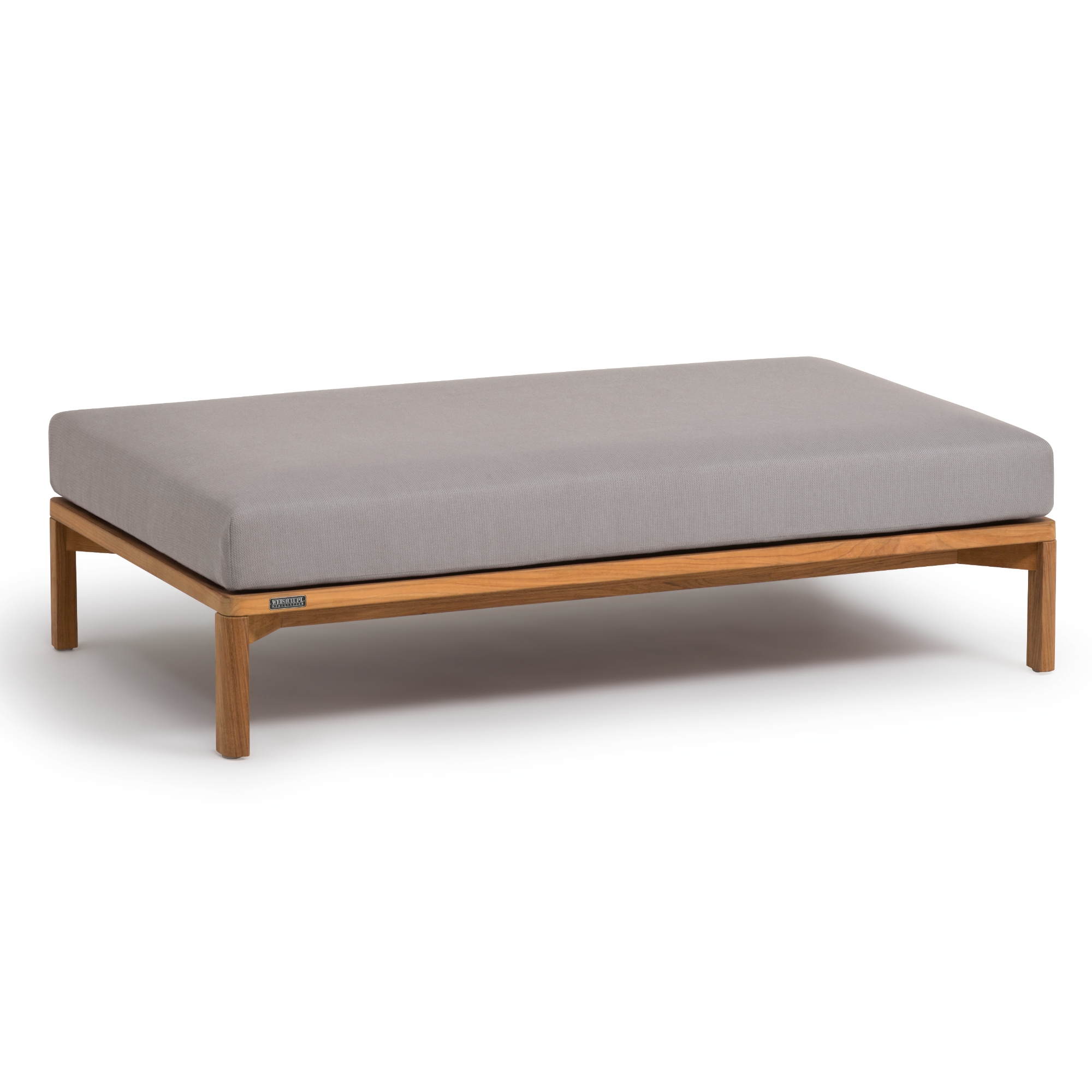 Der Hocker aus der Kollektion New Hampton von Weishäupl verbindet zeitloses Design mit höchstem Komfort. Das elegante Gestell aus massivem Teakholz wird durch seitliche Metallelemente in Weiß, Anthrazit oder Edelstahl stilvoll ergänzt. Die großzügigen, dicken Polster sorgen für ein entspanntes Sitzgefühl und sind in vielen Farben und Stoffqualitäten erhältlich. Ob auf der Terrasse oder im Wohnzimmer – dieser Sessel ist ein echtes Lieblingsstück mit Lounge-Charakter.