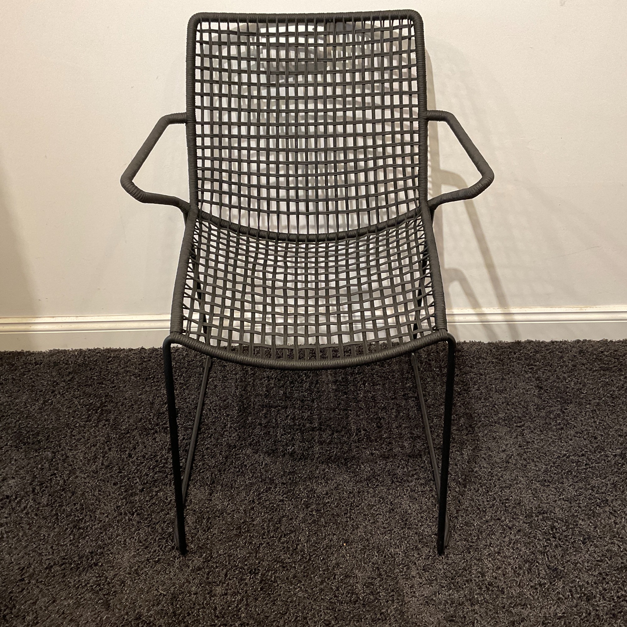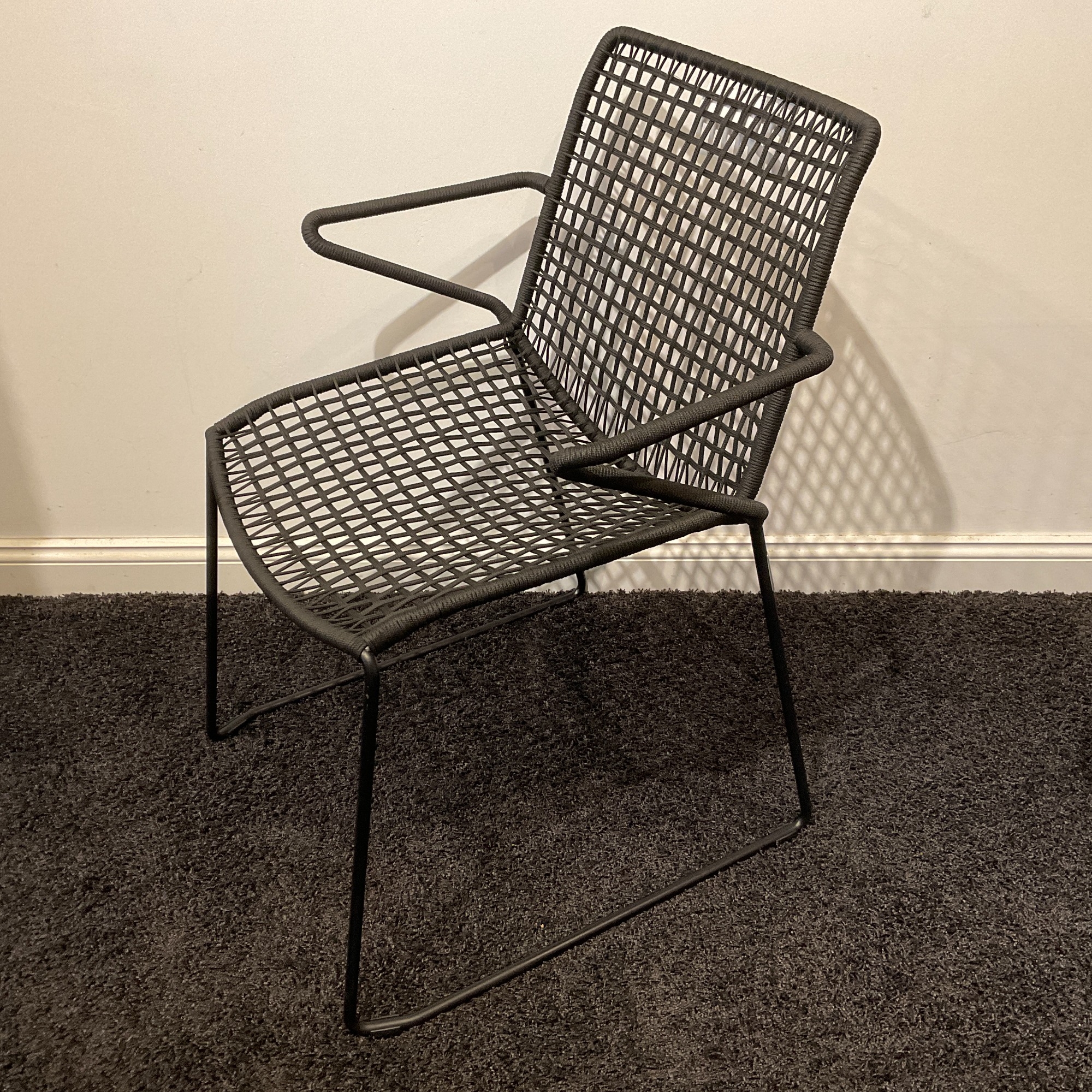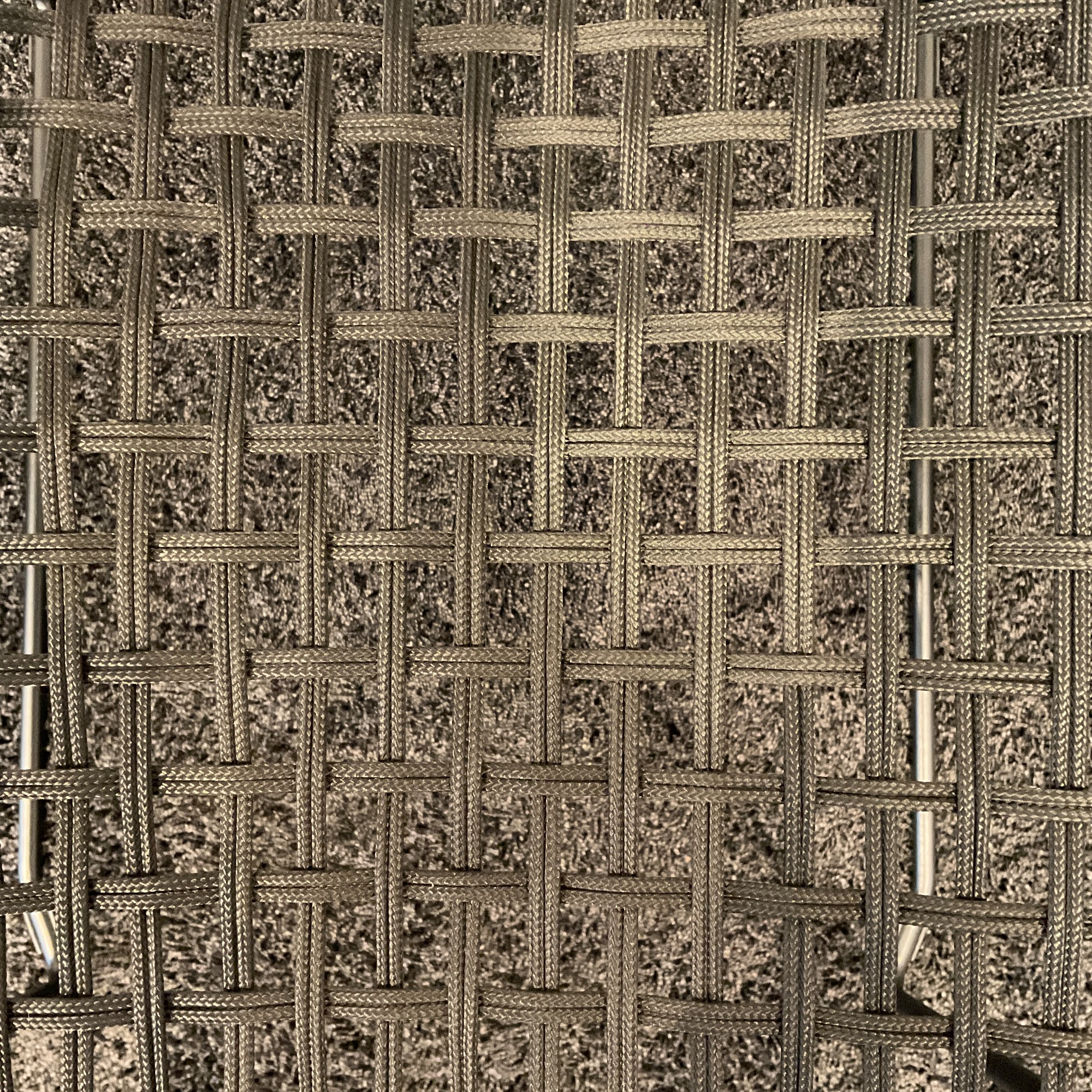 Dieser Sessel besteht aus einem Edelstahlgestell, welches mit einem Gitter aus pflegeleichter Polyesterkordel ausgestattet ist. Dadurch ist der Stuhl bequem und gleichzeitig langlebig.