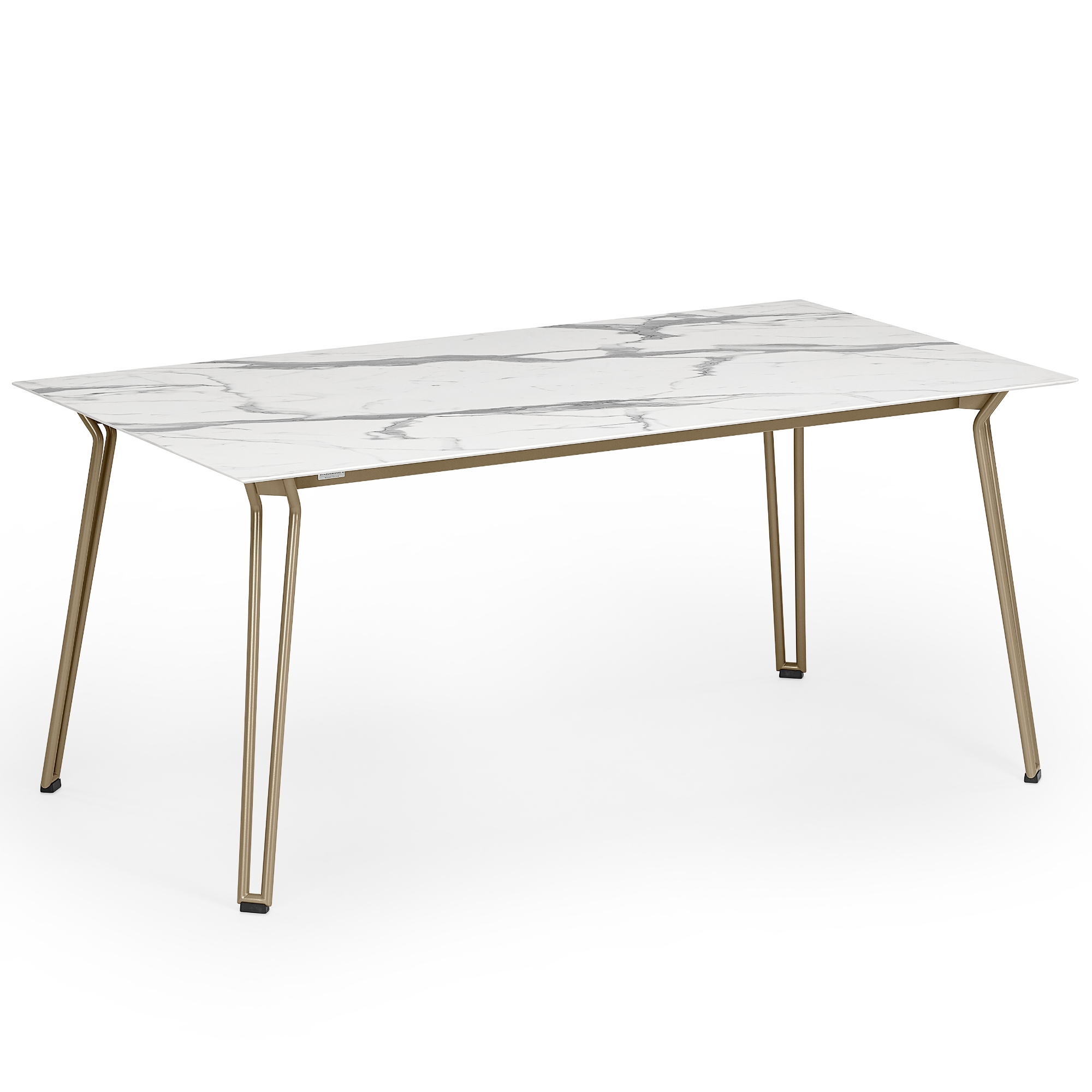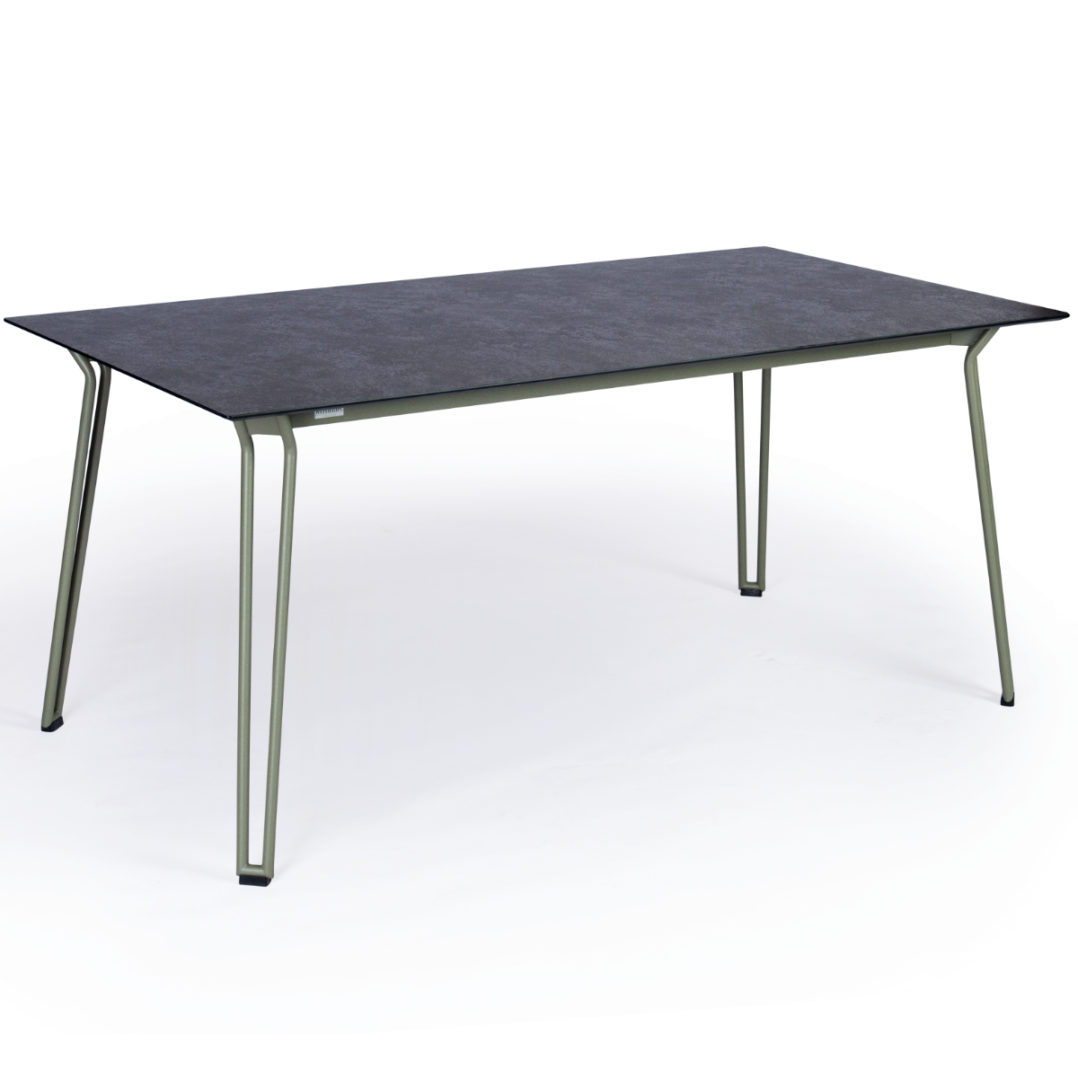 Der rechteckige Slope Tisch zeichnet sich durch eine besondere Form des Gestells aus. Elegant tragen die vier Doppelröhren die Tischplatte und bieten durch ihre äußere Ausrichtung viel Platz für Stühle und Beine.