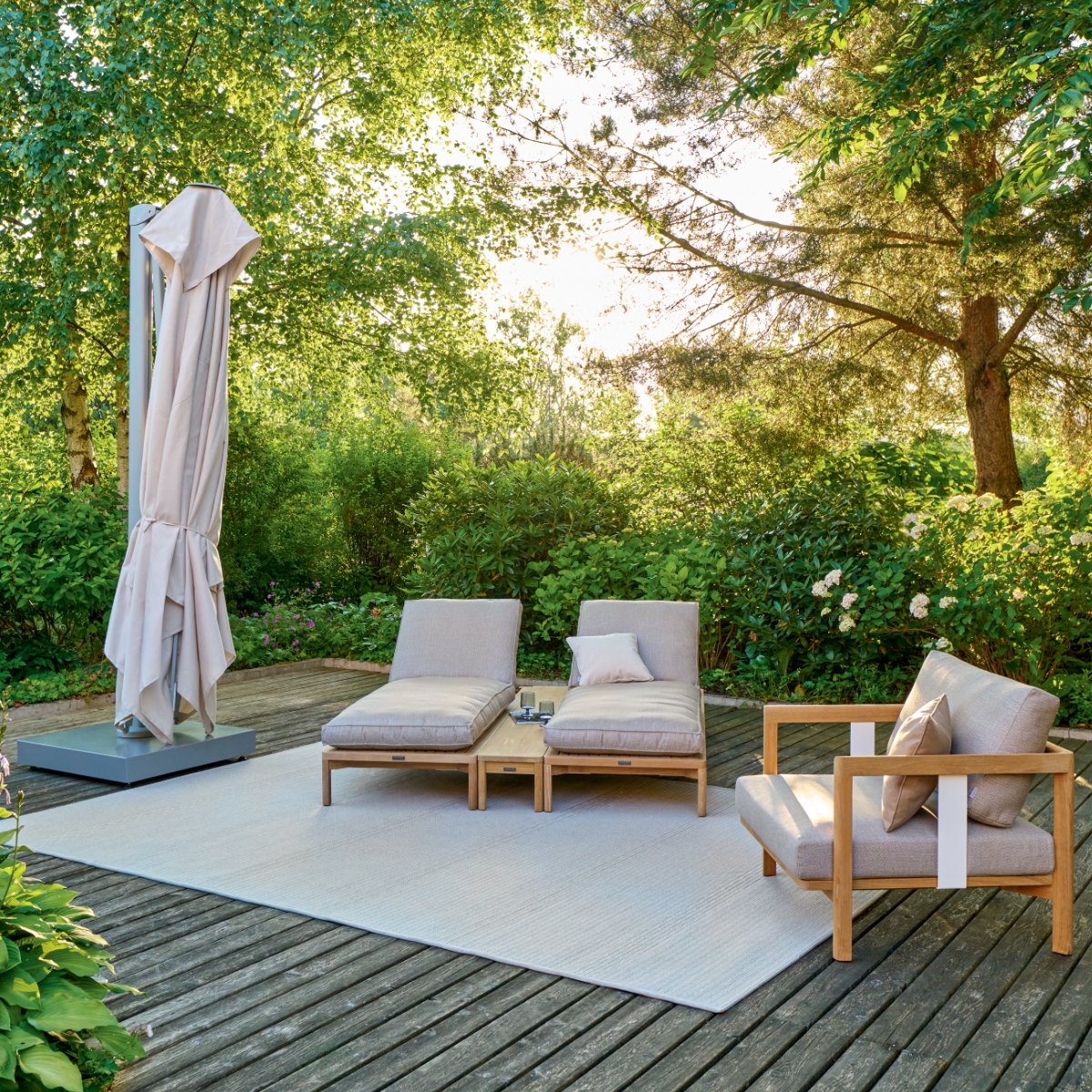 Wir empfehlen Freiarmschirme nicht für den Einsatz an windexponierten Standorten.