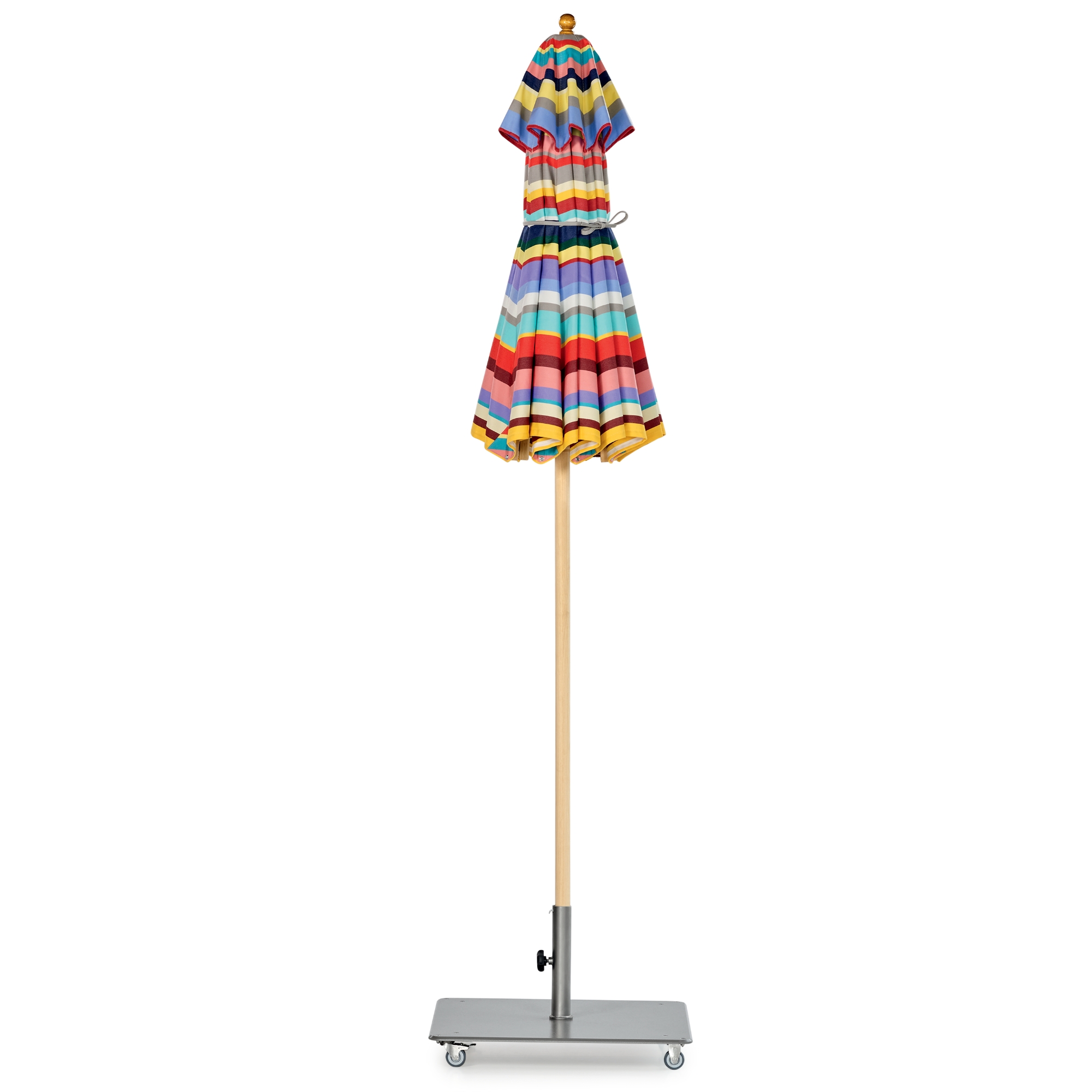 Der KLASSIKER ist oberflächenimprägniert, seine Bespannung wasserabweisend und gegen Fäulnis ausgerüstet. So hält er problemlos kurzen Regenschauern stand. Um ihn gegen Böen zu wappnen, hat Weishäupl ihn mit einer Lufthaube versehen. Fast alle Ausführungen können in der Mixed, Breeze oder Stripe Version oder mit Volants bestellt werden. Der Klassiker hat viele Extras, beispielsweise einen Knickmechanismus auf Lager.