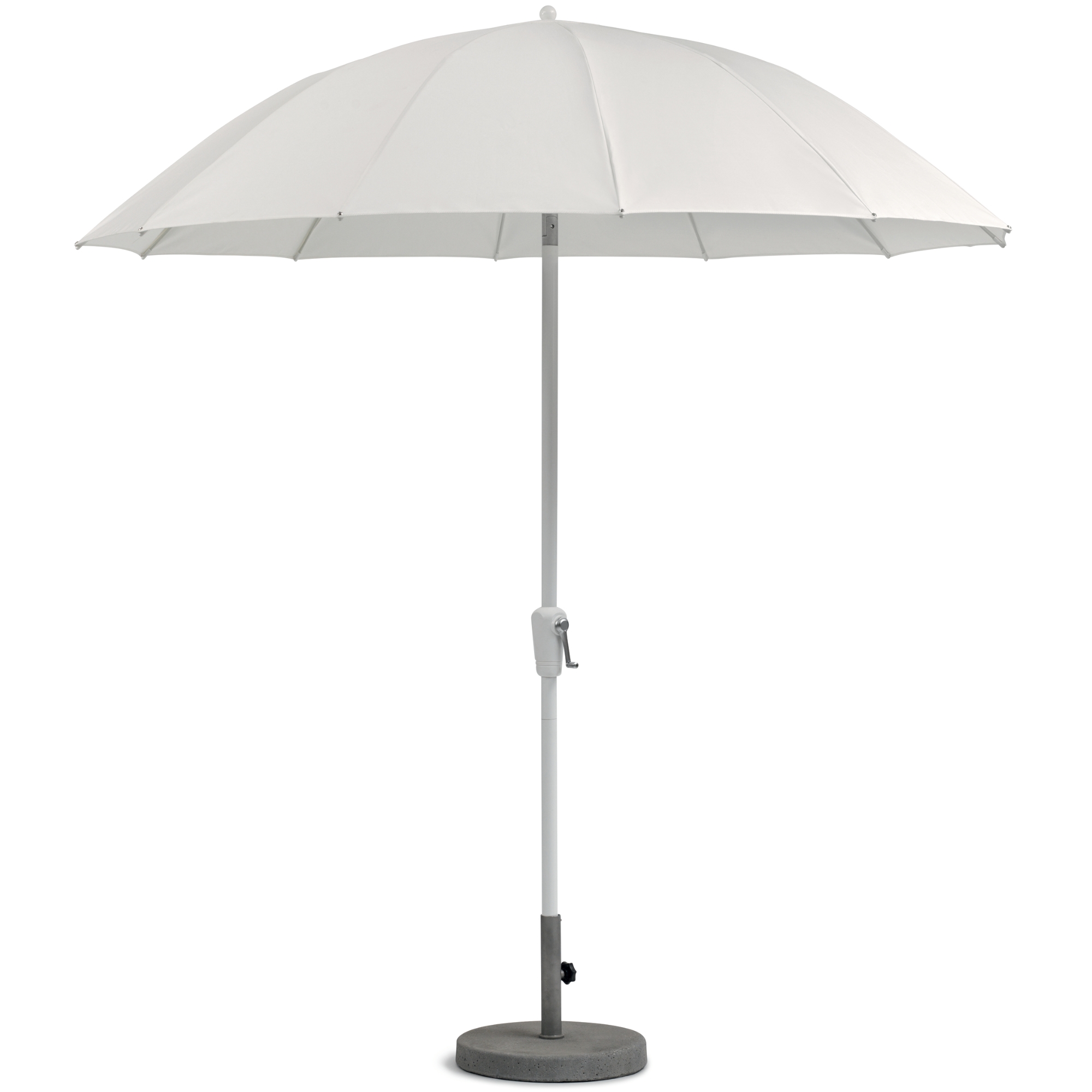 Und weil Vielseitigkeit seine Stärke ist, gibt es den kleineren PAGODENSCHIRM mit weißem Gestell auch mit Kurbelmechanismus.