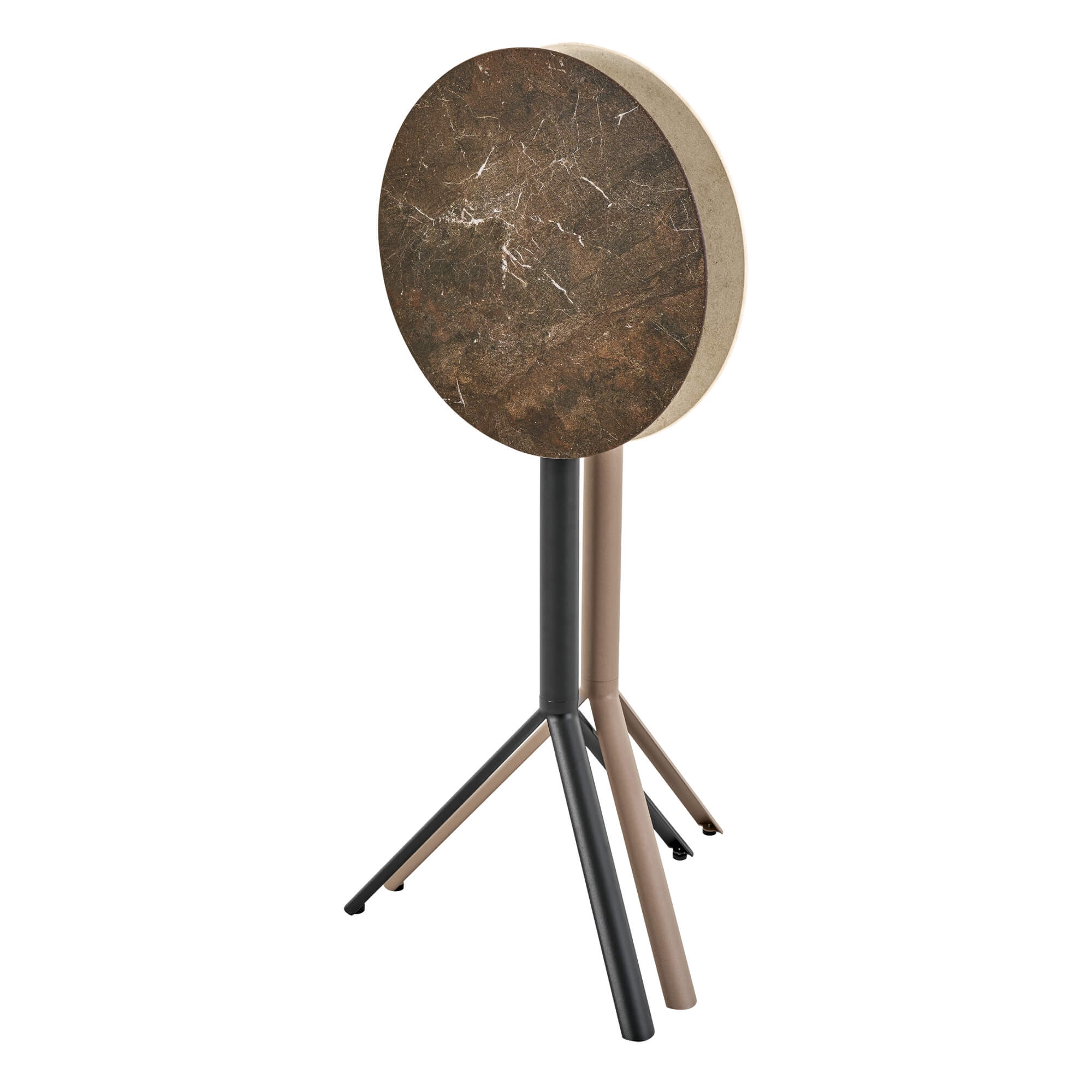 Dreibeiniger Tisch mit klarer Formensprache und vielseitigem Einsatzbereich – ideal für drinnen und draußen. Hochwertige Materialien, modernes Design, minimalistische Eleganz.